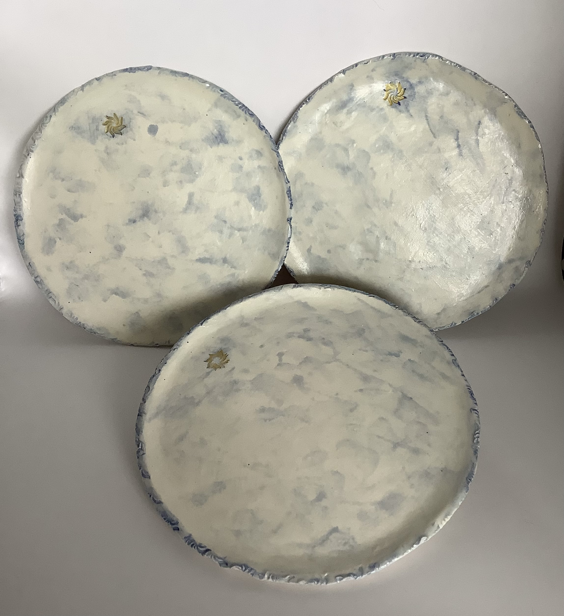 Je travaille chaque plat à la main : je laisse volontairement apparaître de légères irrégularités et nuances, qui témoignent de l’authenticité du geste artisanal.