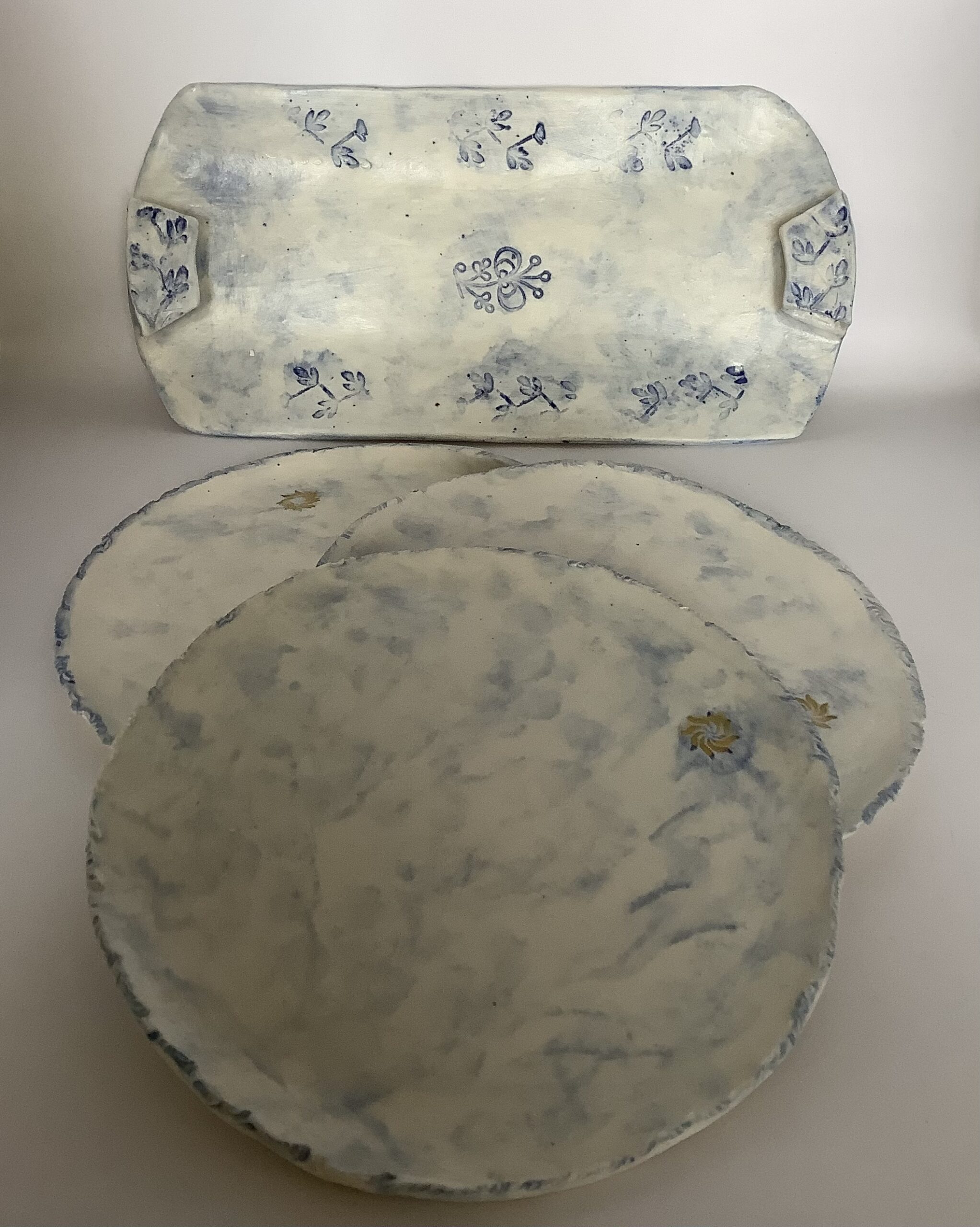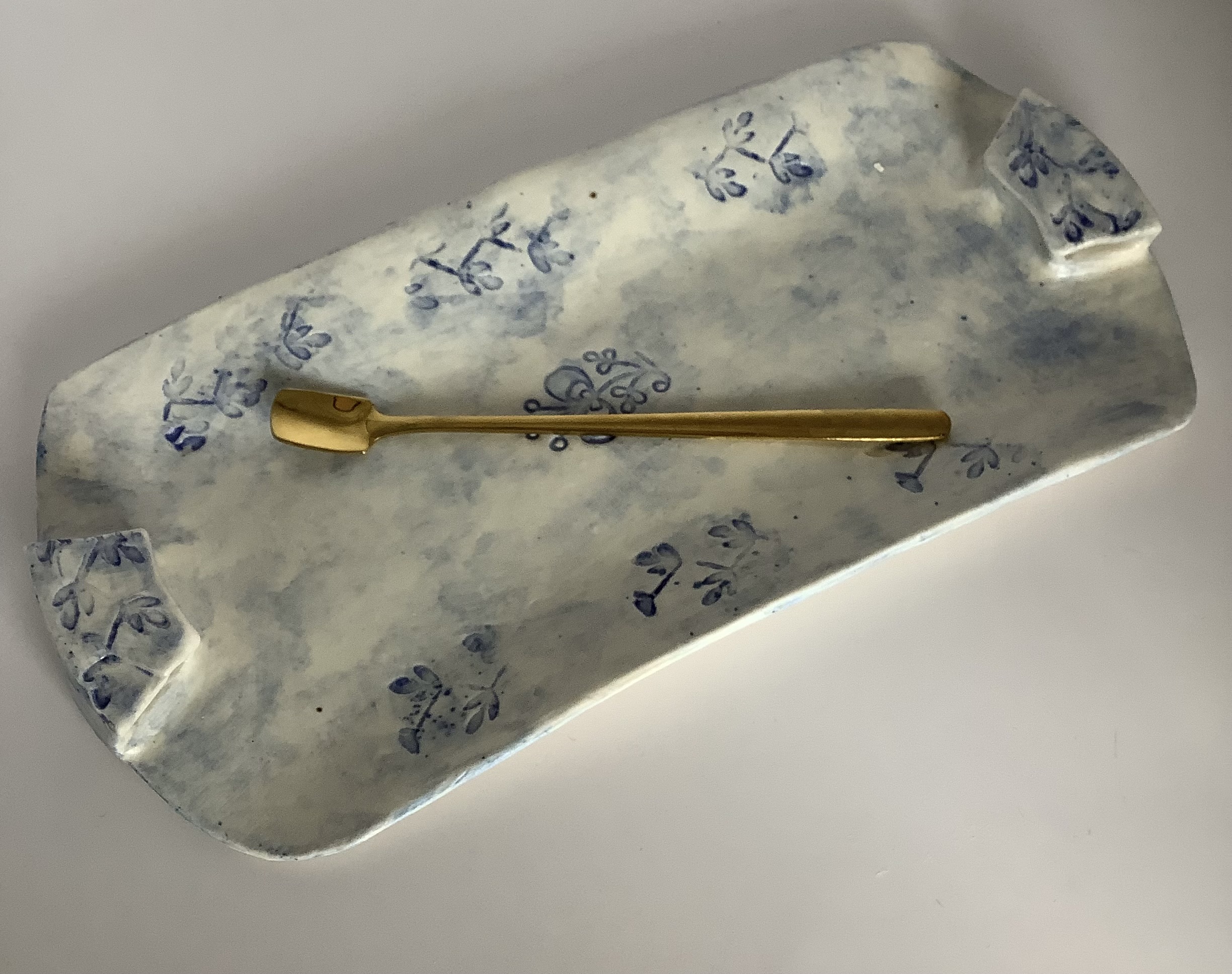 Je crée cette collection en porcelaine pour évoquer la légèreté des nuages et la douceur d’un ciel voilé. J’associe le blanc et le bleu pour donner à chaque pièce un caractère poétique et raffiné.