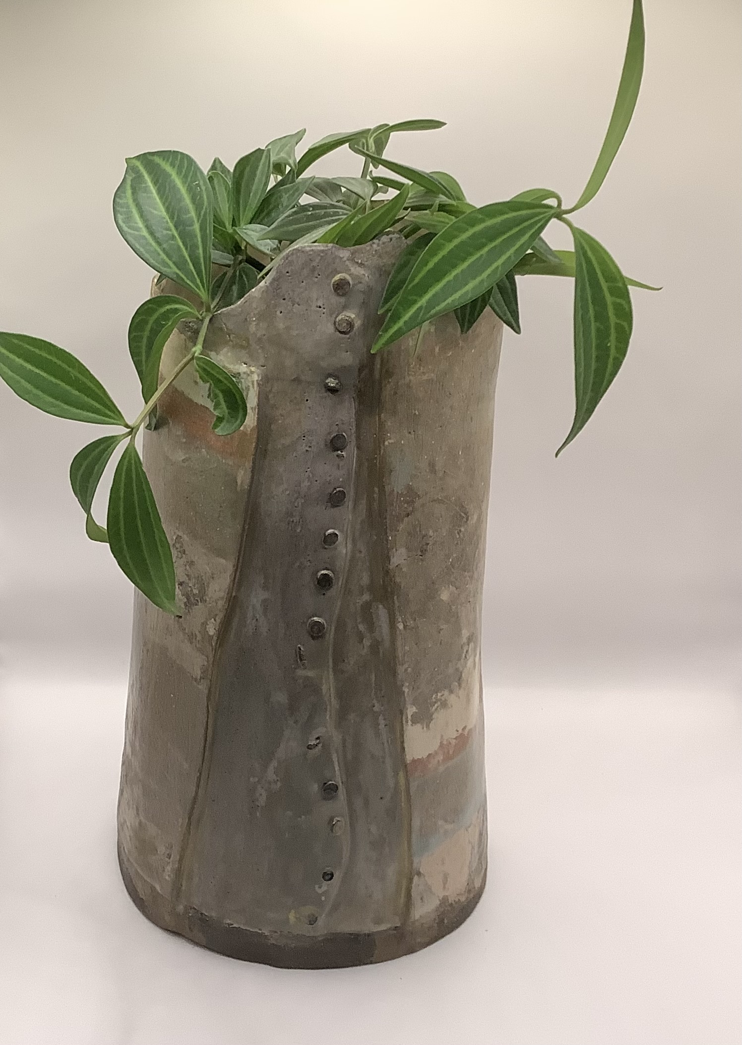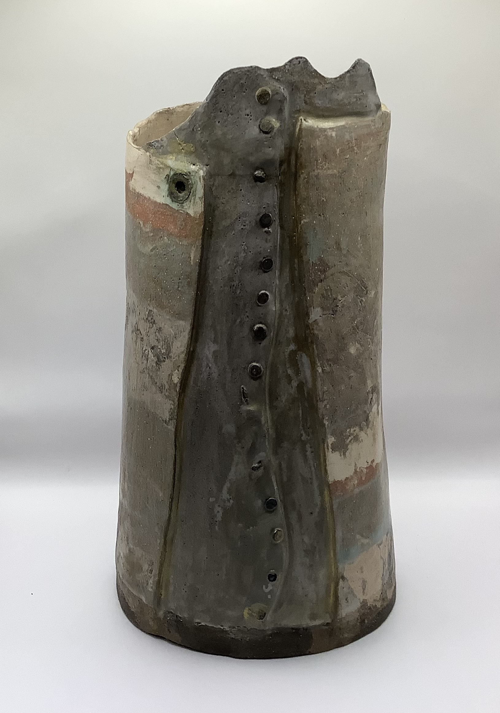 This piece plays with the codes of clothing: the corset, a symbol of constraint but also of beauty, is reinterpreted in clay. The stud buttons become poetic details that transform the ceramic into an object of memory and strength.